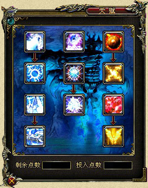 学习天赋的条件: 除了要有相应的技能书和足够技能点之外,学习天赋技能还要遵循以下规则: 第一层技能,除以上条件无其他附加条件。 第二层技能,需要在第一层投入5点技能点。 第三层技能,需要在前面(一层和二层)投入10点技能点。 第四层技能,需要在前面(前三层)投入15点技能点。 三个职业学习天赋技能都遵守以上规则。 如上规则,玩家并不一定需要把某一个技能学到5级,才能继续学习下面的技能,适当的选择学习天赋技能,每层都有合理分配5点天赋技能点的机会。